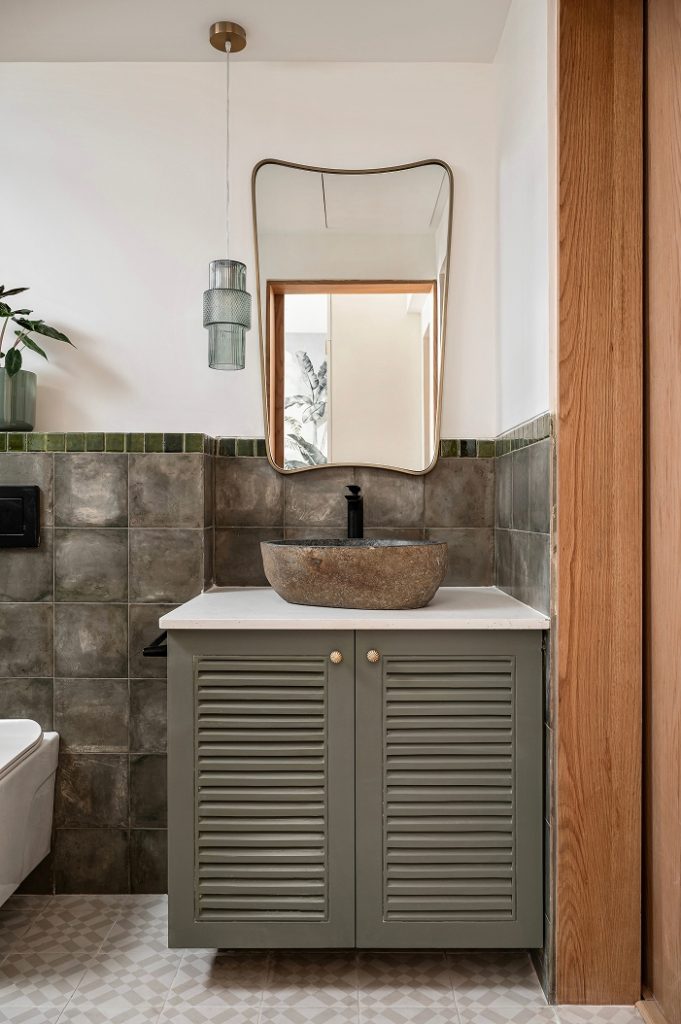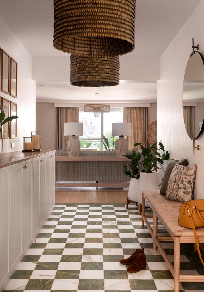 What happens when a holiday state of mind seeps into a home? Designed as a tribute to the clients’ wanderlust, this urban apartment immerses minimalism in pastel hues of greens, sandy beige, and blues. Underfoot, the oak floors give way to chequered green and white tiles, inviting patterns to play into the mix.