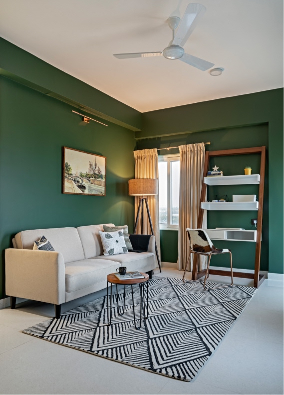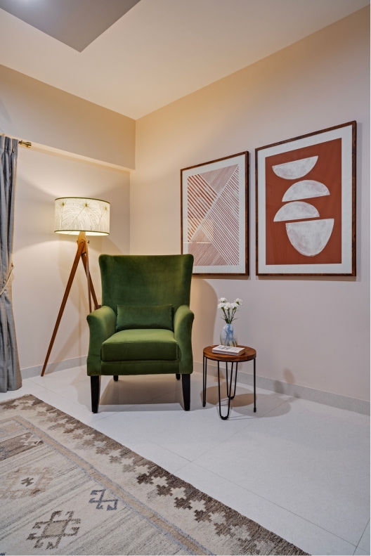 The all-green den is sumptuous in its experimentation with colour. In contrast, the master and guest suites adopt a more minimalist approach to using hues and patterns, allowing texture and tonal play to shine.