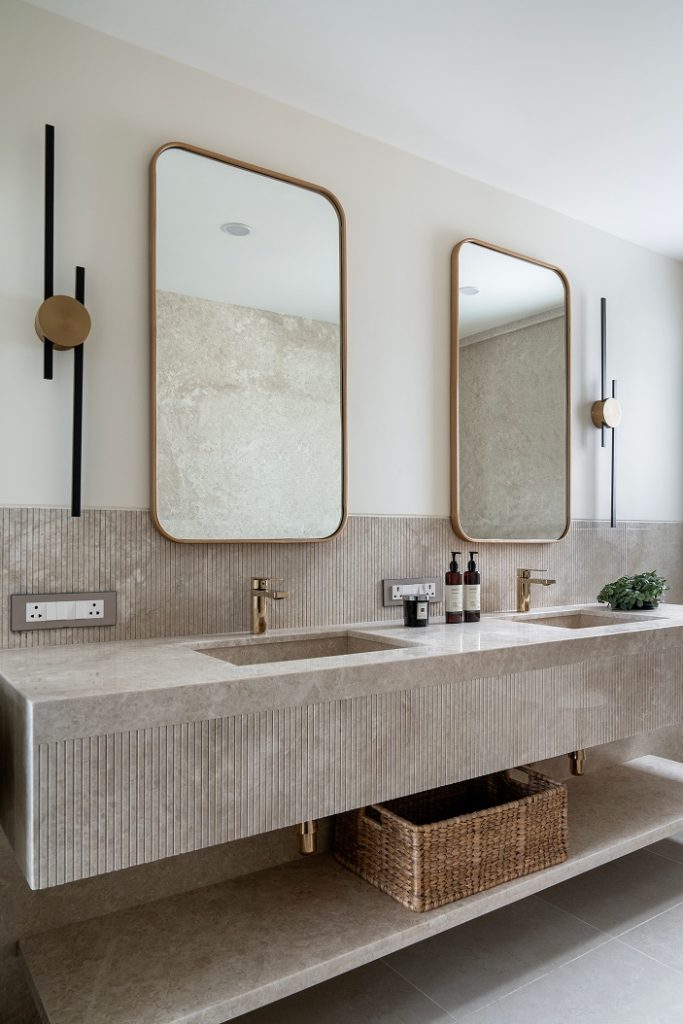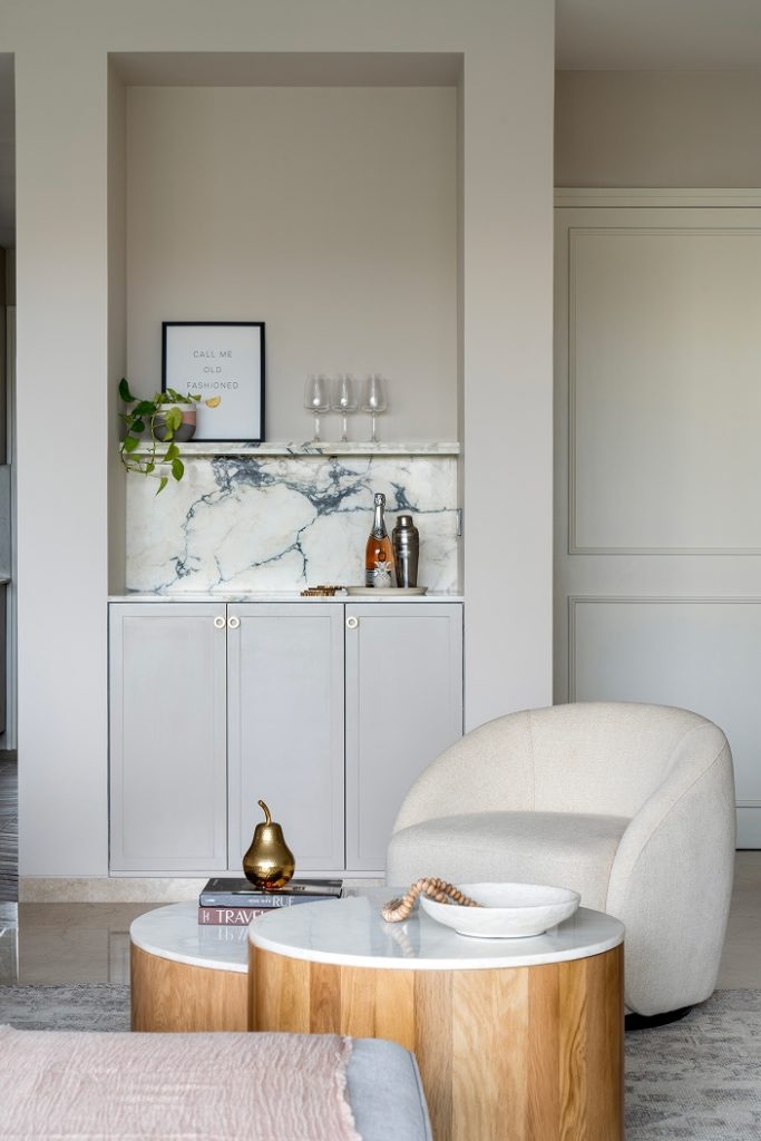 The clients requested a contemporary, understated space with neutral tones that would offer sleek simplicity and practical functionality suitable for a young family returning from years spent overseas.